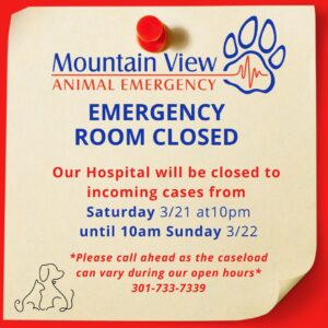 Learn MoreMountain View Animal Emergency is a full service emergency veterinary hospital located in North Hagerstown. Serving the tri-state area since 2008, MVAE provides emergency care to dogs and cats. Our doctors and support staff have the experience, compassion, and expertise needed to help you and your pet in times of need.